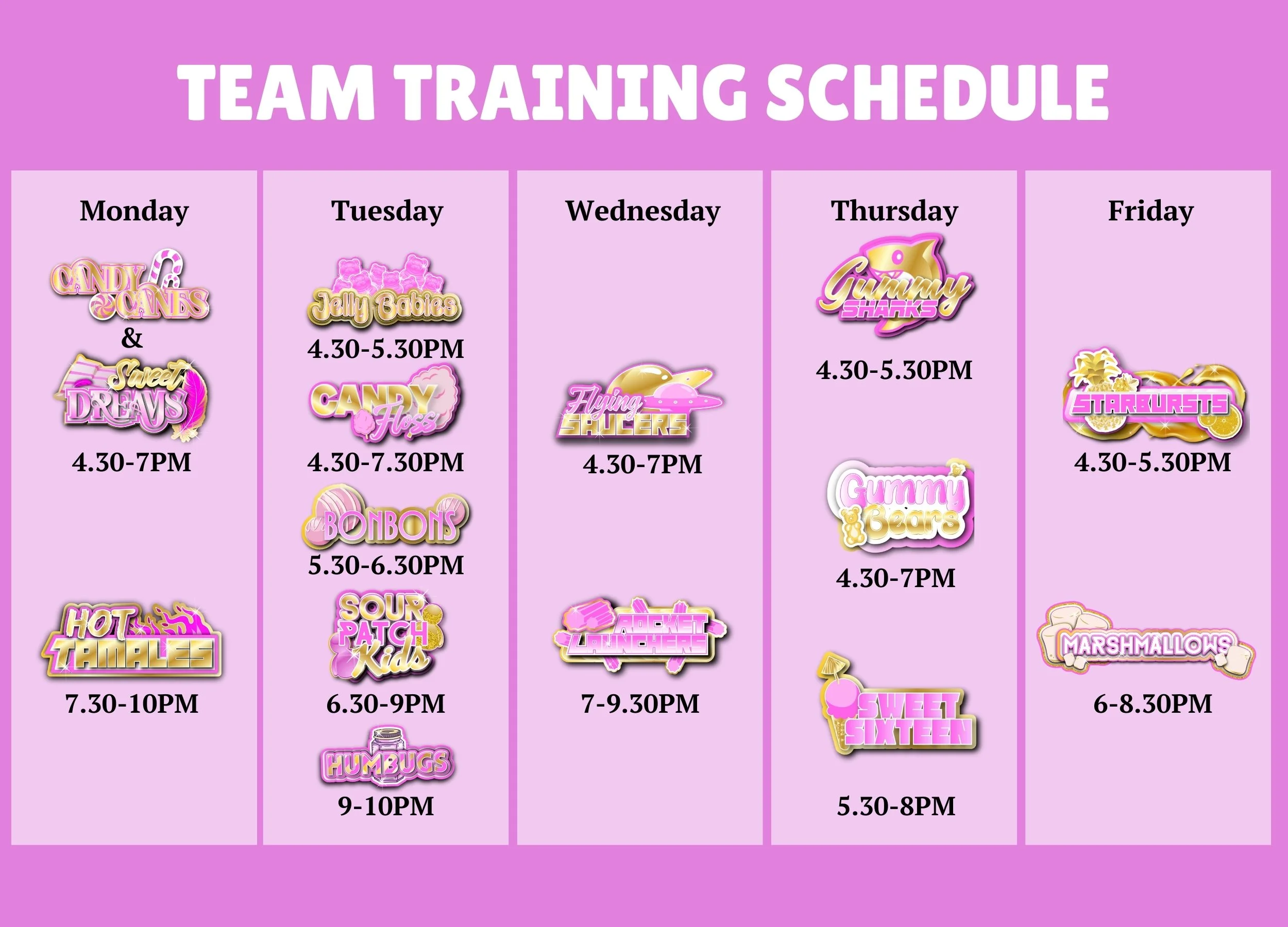 This is our competing cheerleading programme! Novice, prep, all-star and Elite Allstar Teams Available!